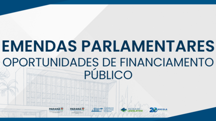 Inscrições: https://www.assembleia.pr.leg.br/escoladolegislativo/palestras/emendas-parlamentares-oportunidades-de-financiamento-publico-2